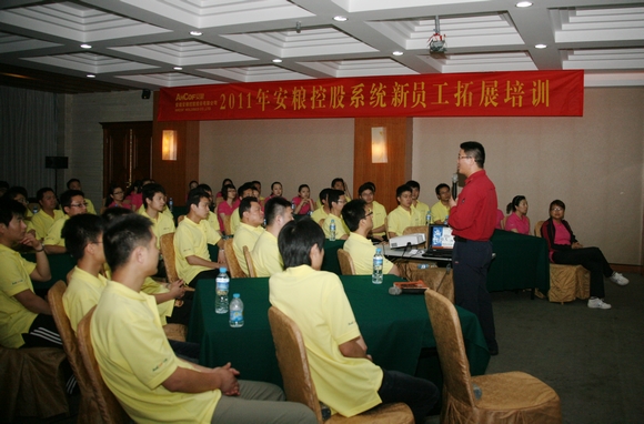 由公司辦公室(人力資源部)精心籌備組織的2011年安糧控股系統(tǒng)新員工文化導(dǎo)入暨拓展訓(xùn)練活動(dòng)于6月10日、11日在馬鞍山盛德軒國(guó)際會(huì)議中心順利舉行。本次活動(dòng)參訓(xùn)人員共計(jì)68人(其中63人參加拓展培訓(xùn)),公司總法律顧問儲(chǔ)潔印、辦公室主任潘冬生與新員工一道參加了培訓(xùn)。