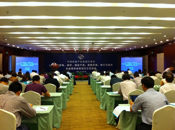 8月24日,由中國機(jī)電產(chǎn)品進(jìn)出口商會主辦的“2011年家電、視聽、信息產(chǎn)品、儀器儀表、電子元器件分會理事會暨出口工作會議”在合肥天鵝湖大酒店舉行。作為機(jī)電商會視聽分會的理事單位,安糧國際總經(jīng)理助理吳國杰等人參加了會議。