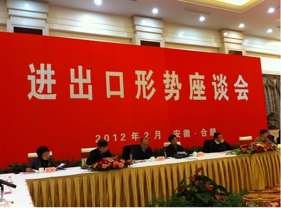 2月11日下午,商務(wù)部部長陳德銘在合肥主持召開了進出口形勢座談會。安徽省副省長花建慧、省政府副秘書長張武揚、省商務(wù)廳廳長方西屏,商務(wù)部國際貿(mào)易談判代表秘書局局長兼辦公廳副主任沈丹陽、政研室主任張向晨、流通發(fā)展司司長向欣、外資司司長劉亞軍等領(lǐng)導(dǎo)以及安徽省12家重點進出口企業(yè)代表參加了會議。