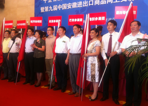 8月21日上午,“千企百展”——安徽產(chǎn)品走世界活動啟動儀式暨第九屆中國安徽進出口商品網(wǎng)上交易會開幕式在合肥翡翠湖迎賓館隆重舉行,省政府花建慧副省長、省商務廳方西屏廳長等領導出席了開幕式。安糧國際作為重點參展企業(yè)代表,組成了8人代表團參加了開幕式并接受了花建慧副省長授旗。