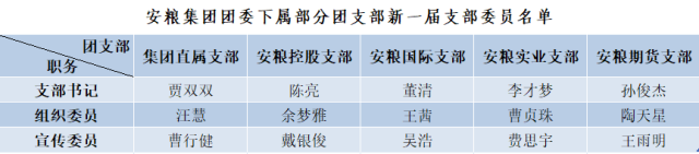各支部新一屆委員紛紛表示將接過上一屆支委接力棒,充分發(fā)揮好共青團(tuán)的橋梁紐帶作用,認(rèn)真聽取廣大團(tuán)員青年的意見和需求,精誠團(tuán)結(jié),銳意進(jìn)取,以青春之力譜寫安糧集團(tuán)共青團(tuán)工作新篇章。