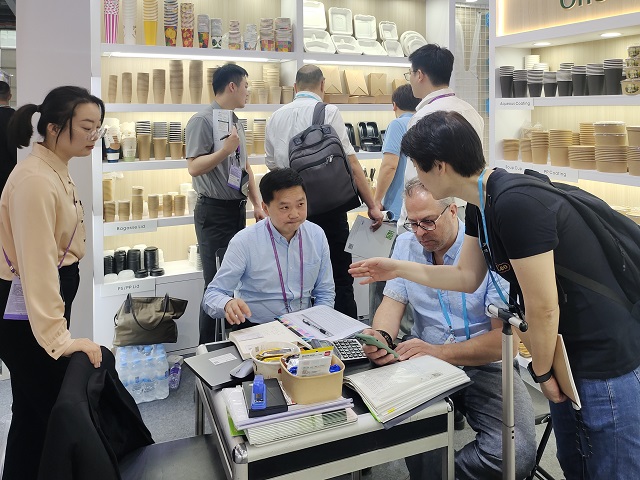 安糧家居展位由安糧國際日用品事業(yè)部攜數(shù)百款單品展出,產(chǎn)品幾乎覆蓋一次性餐廚全套系列。本次展會重點推出了全新的PHA高端系列以及壽司盒、紙盤、甘蔗漿吸管、超細(xì)纖維抹布等新品,在館內(nèi)格外醒目、深受青睞。此外,部門順應(yīng)綠色環(huán)保趨勢,推出了一系列最新環(huán)保產(chǎn)品,吸引了不少具有環(huán)保意識的客戶群體關(guān)注。攤位模擬國外超市擺放,仿造小型超市。擺放的產(chǎn)品統(tǒng)一設(shè)計包裝,著眼聚焦“產(chǎn)品系列化+全流程服務(wù)”,為全球采購商提供便利的“一站式采購服務(wù)”,獲得新老客戶的一致認(rèn)可與好評。