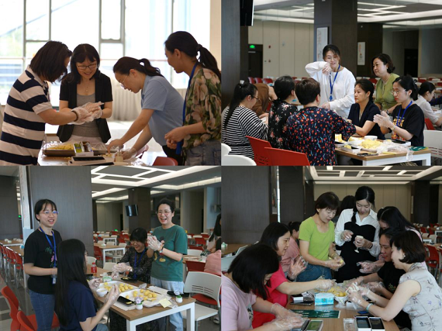 接著進入了大家最躍躍欲試的環(huán)節(jié)——DIY綠豆糕。同事們圍坐一堂,有的揉面,有的裝模,有的擺盤,有的包裝,大家一邊認(rèn)真制作,一邊相互交流。在大家精心制作下,一個個、一盒盒香甜美味、花色各異的綠豆糕呈現(xiàn)在眼前?;顒蝇F(xiàn)場其樂融融,洋溢著和諧、平安與幸福的氛圍,大家一起感受親手制作綠豆糕帶來的歡樂。