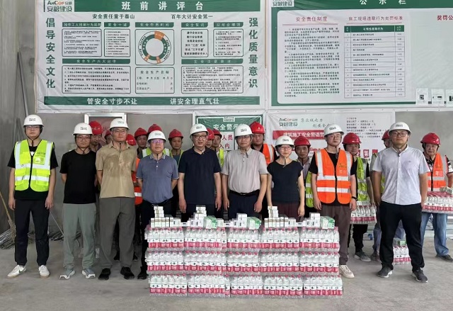 炎炎夏日,酷暑高溫,為切實(shí)做好職工夏季防暑降溫工作,用心用情關(guān)愛一線職工,8月2日,安糧集團(tuán)工會(huì)開展“關(guān)愛職工,夏送清涼”活動(dòng),工會(huì)主席周洪帶隊(duì)來到安糧建設(shè)項(xiàng)目工地,對在高溫條件下作業(yè)的職工進(jìn)行慰問,為奮戰(zhàn)在酷暑一線的工作人員送清涼、送關(guān)懷。
