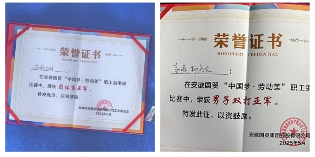 在5月27日落幕的 “中國(guó)夢(mèng)?勞動(dòng)美” 安徽國(guó)貿(mào)職工羽毛球賽中,安糧集團(tuán)代表隊(duì)團(tuán)結(jié)協(xié)作、奮力拼搏,奪得團(tuán)體亞軍。來(lái)自安糧新鏈的楊杰文與安糧期貨的趙濤在單項(xiàng)賽中斬獲男子雙打亞軍,展現(xiàn)出安糧員工昂揚(yáng)向上的精神風(fēng)貌。