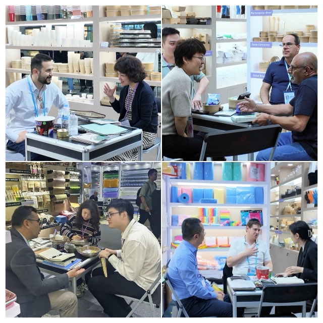 在家居展區(qū),開(kāi)展首日便迎來(lái)一大波客戶咨詢。依托安糧20余年深耕一次性餐廚制品領(lǐng)域的專業(yè)積淀與行業(yè)洞察力,本次重點(diǎn)首發(fā)的紙質(zhì)水果盒、紙制刀叉餐具等創(chuàng)新產(chǎn)品,憑借獨(dú)特的差異化設(shè)計(jì)迅速成為全場(chǎng)焦點(diǎn)之一。此外,展區(qū)同步展出的紙制品、全新塑料制品、竹木制品以及無(wú)紡布制品等核心品類,全面覆蓋海外市場(chǎng)多元化采購(gòu)需求。在品質(zhì)把控層面,安糧更是對(duì)標(biāo)國(guó)際前沿標(biāo)準(zhǔn)——以展會(huì)熱門展品紙杯為例,已升級(jí)至EUDR(歐盟盡職調(diào)查法規(guī))標(biāo)準(zhǔn),完全符合歐盟進(jìn)口要求,截至目前,已與來(lái)自比利時(shí)、科威特、日本的客戶達(dá)成初步成交意向,為后續(xù)海外市場(chǎng)拓展奠定堅(jiān)實(shí)基礎(chǔ)。
